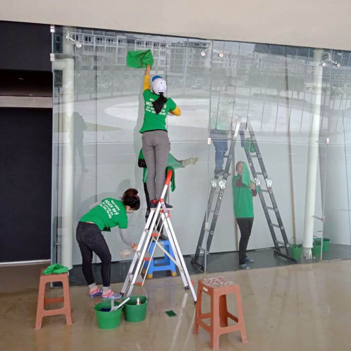 Trong quá trình lau kính nhà cao tầng, showroom… chúng tôi cũng thực hiện làm sạch các phần mép tường, tẩy sạch các vết bẩn gây ra bởi axit, nước mưa hay những tàn tích còn sót lại của quá trình thi công xây dựng kính và khung kính. Những vết ố, bụi bẩn tưởng không thể xóa mờ đều có thể gạt bay bởi các công nhân nhà sạch được đào tạo chuyên sâu, có kinh nghiệm và kỹ năng xử lý mọi loại vết bẩn.